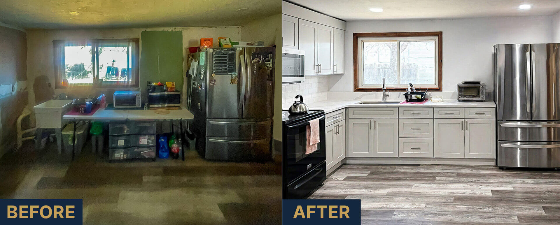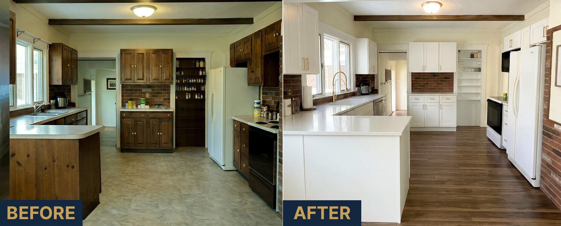 - The Goal: To refresh the existing kitchen with a clean, updated look by replacing outdated cabinetry and worn surfaces, while keeping the original layout to maintain efficiency and control costs.