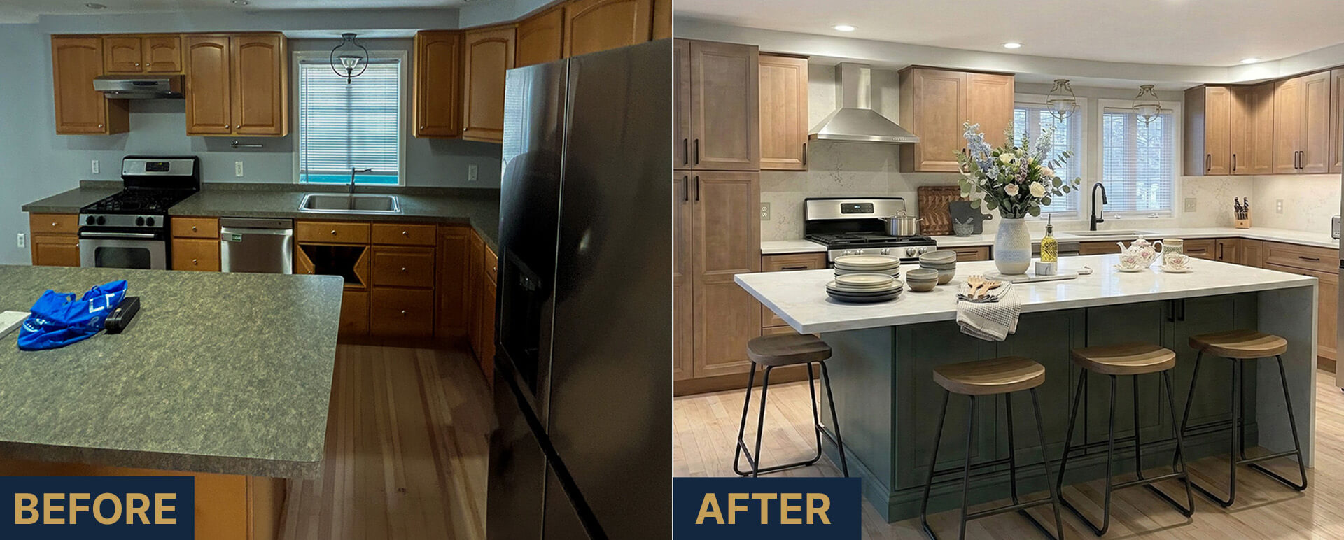 Our $10,000 Kitchen Refresh offers an affordable solution at a straightforward price point. This package is designed to be efficient and high-impact for Massachusetts homeowners.